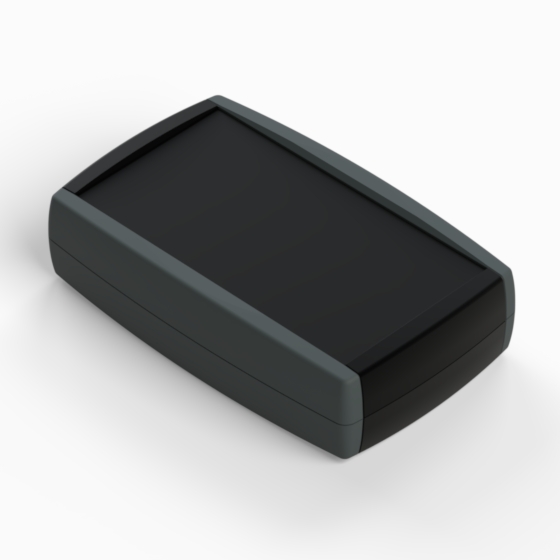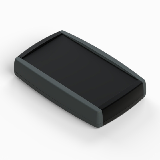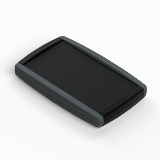 ABS enclosures with new soft-touch contoured shape. By utilising multi-shot moulding technique, Teknet features an ergonomic design of elastomer grips (TPU) on the side of the case. The models with “-B” have a battery compartment for two 1.5V mignon-cells (AA) or one 9V flat battery (PP3). The models with “-B2” have a battery compartment for four mignon cells 1,5V (AA) or two flat batteries 9V (PP3). Matt surface finish. Closing by four screws. Upon request aluminium panel “APTB”, Keypad membrane “M” or “MW” (with transparent display area).